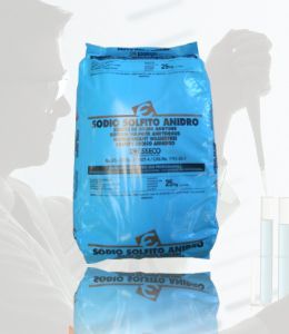 Sulfito de Sodio importado, de origen italiano marca ESSECO, cumple con las especificaciones de otros productos importados de mayor precio, lo cual genera un ahorro a su empresa. Fino polvo blanco sin olor. El servicio a domicilio es gratuito limitado al área estatal comprando de 1,000 kilos en adelante. El precio es por bulto de 25 kilos.